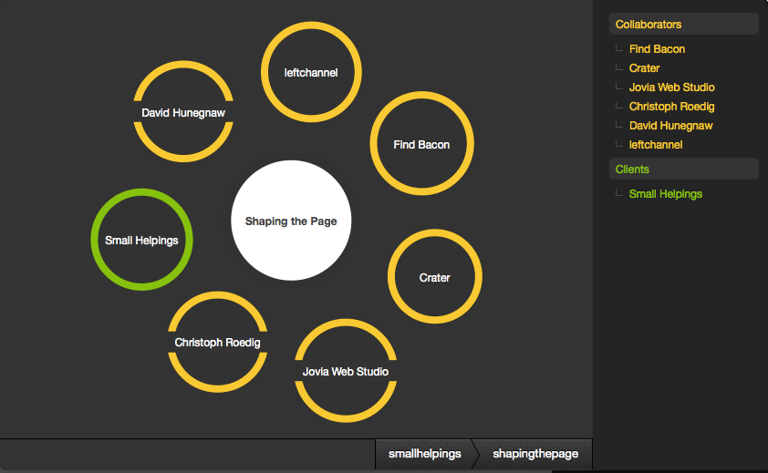 The visualization network network graph is visually striking and helpfully interactive — allowing users navigate the small business network, showing them how to connect with the businesses they wish.