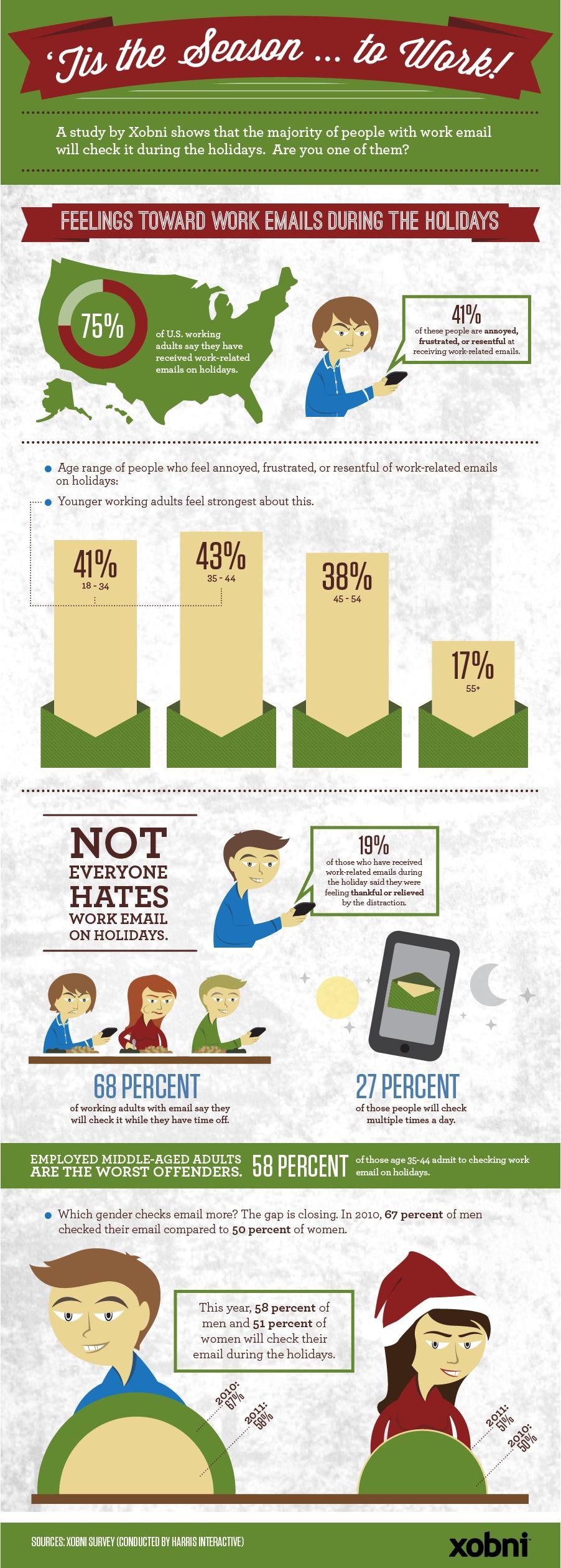 The phonetically challenging email and content management company, Xobni, revealed the results of their annual online survey regarding email behavior Tuesday, and it shows that working Americans will be checking more than their turkeys over the holidays.