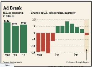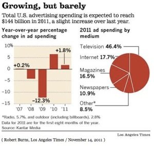 The Los Angeles Times Story about the same report from Kantar says that “seismic shifts in spending continue to roil the media industry.” Pointing out that many of these changes have been driven by the recession, the LA Times cites major ad buying categories like retailers, automakers and homes sellers as having “been particularly hard hit, and few are predicting a speedy recovery.”