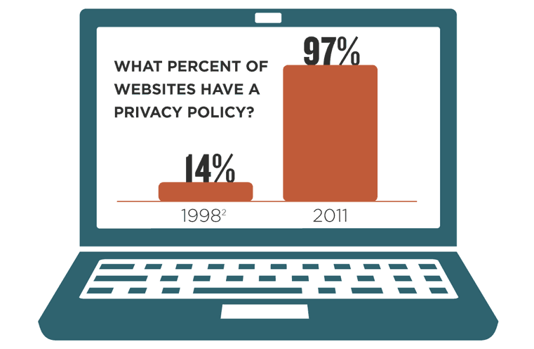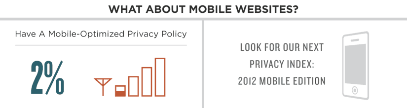 Nationally, 14% of websites analyzed in 1998 had privacy policy, compared with the 97% found this year. Yet out of the 100 websites analyzed, only a meager 2% have a mobile-optimized privacy policy.