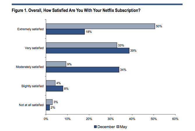 Citi analyst Mark Mahaney expressed that the results are skewed since it was shown that most of those truly upset by the price hikes, attempts at a spinoff company and the loss of some programming have likely already left the service.