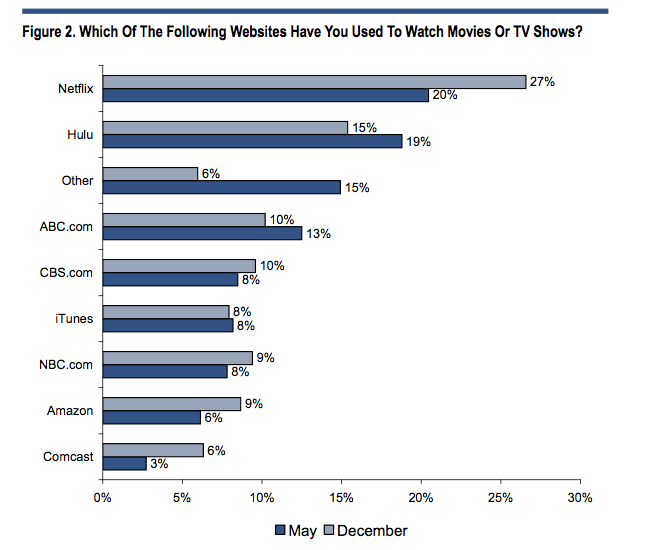 Surprisingly, Hulu dropped from 19% to 15% and ABC’s website also experienced a noticeable drop from 13% to 10%.