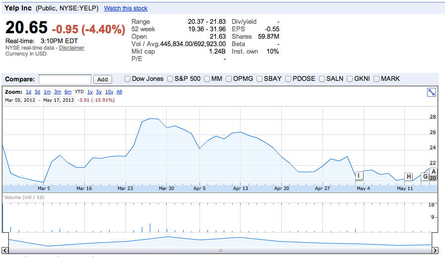 Yelp experienced the always desired tech pop on the public markets when it had its IPO just a few months ago. In the first day of trading it jumped $10, or 67%, to $24.58, after the online destination for for local business reviews and dining suggestions, priced its IPO at $15, and finally closed for the day at $24.50. That’s a whopping 63% pop on opening day.