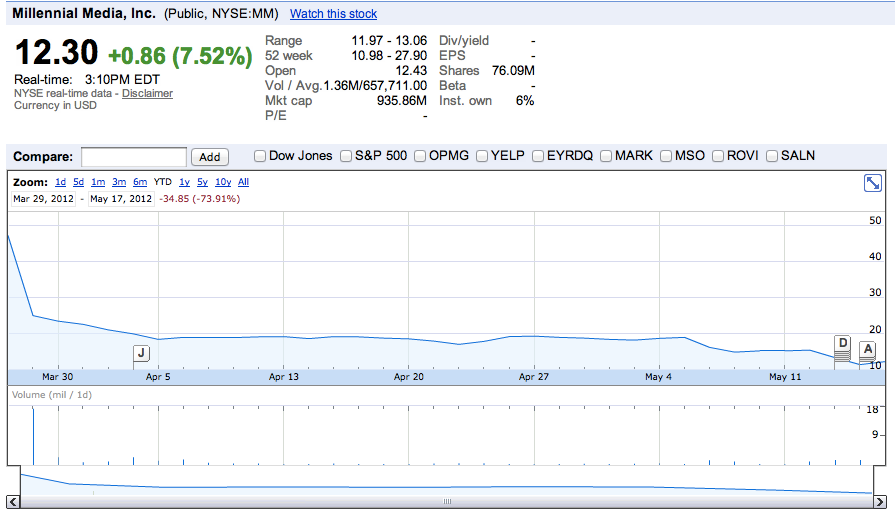 Volume in early trading was 13.4 million shares (significantly more than the expected 11.7 million). At the current price, Jive is trading at a market cap of $708 million.