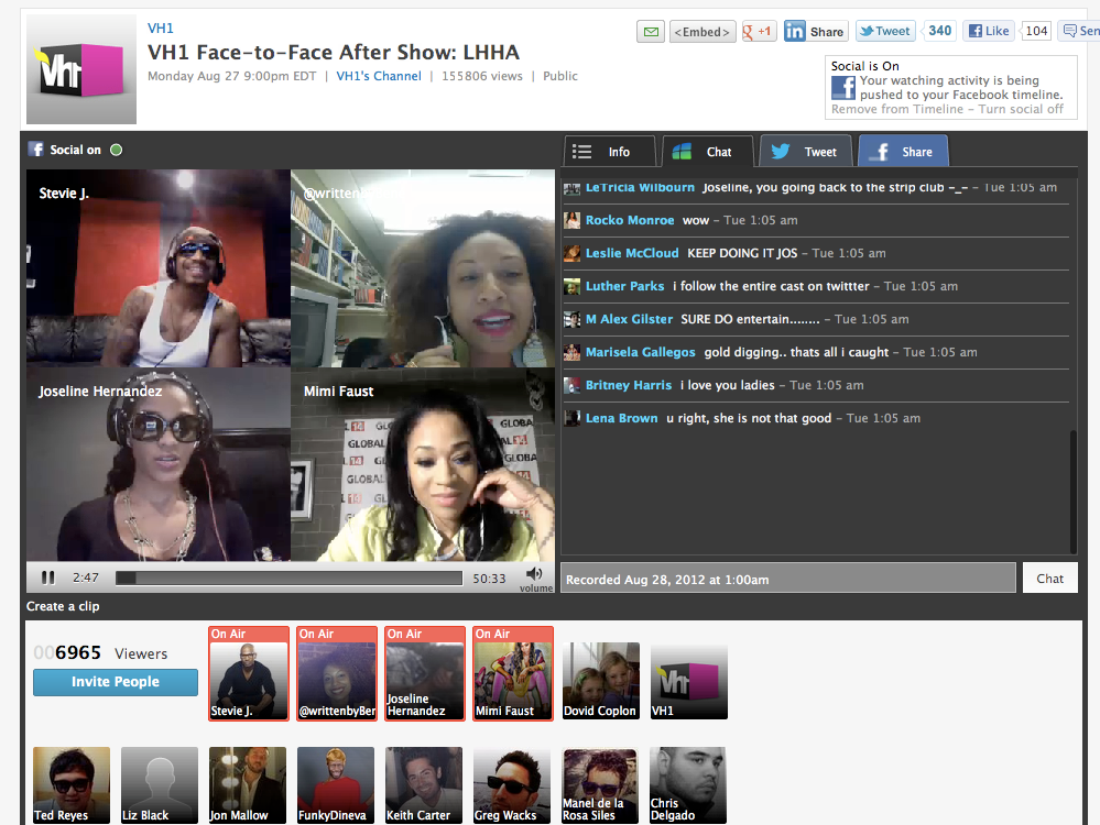 Prior to the formalized relationship, VH1 and Logo Digital had already run a few spreecasts. The “Love & Hip Hot Atlanta” spreecasts saw 250,000 viewers. Some 35 fans went on-camera to ask questions and 1342 fans chatted. Fluhr said that it’s early days for this type of engagement and the companies are just “scratching the surface” in terms of what can be done on with spreecasts.