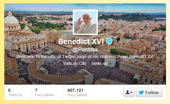 For example, here is the header photo for the Pope’s recently created Twitter account: