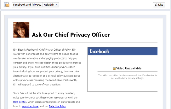 “As Facebook’s Chief Privacy Officer of Policy, I’m responsible for working with our teams at Facebook to be sure that we build our products with your privacy in mind. We also work hard to communicate with you – through our Data Use Policy, our Help Center, and in our products – about how we use your information and how you can control this use.”