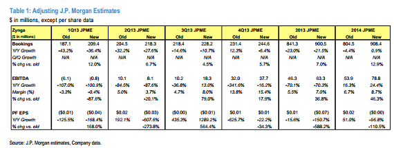 Anmuth raised his estimates on Zynga’s first quarter 2013 revenue to $209.4 million from $187.1 million and Zynga’s full year 2013 revenue to $900.5 million from $841.3 million.
