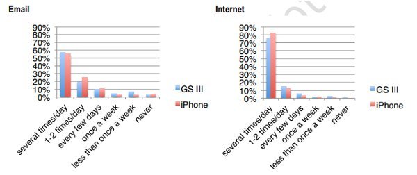 A new study released by Consumer Intelligence Research Partners sheds some new light on this feud, revealing that Samsung GS III buyers and iPhone buyers are much more similar than previously thought. Specifically, researchers interviewed 500 iPhone owners and 500 GS III owners and analyzed phone usage in six different ways. The report found that iPhone and GS III owners used their phones for calls, texting, email, and Internet access at virtually identical rates. When it comes to gaming and photos, iPhone users tend to use their phones slightly more than GS III owners.