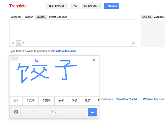“Handwriting input lets you translate a written expression, even if you don’t know how to type the characters,” Google product manager Xiangye Xiao wrote in the blog post. “For example, suppose you see the Chinese expression ‘é¥ºå’ and want to know its meaning in English, but have no idea how to type these characters. Using the new handwriting input tool, you can simply draw these characters on your screen and instantly see the translation.”