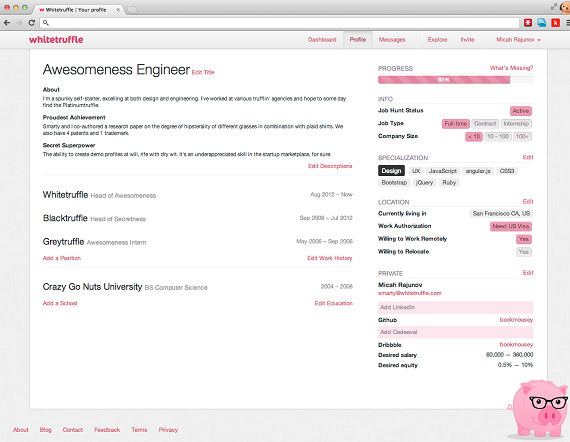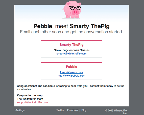 Employers and candidates have the ability to shut Whitetruffle off if they are no longer looking for work, though Whitetruffle will still send a monthly email showing them the jobs they missed.