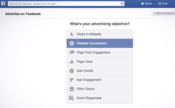 So these are the eight objectives that Facebook is now offering them: Clicks to Website, Website Conversions, Page Post Engagement, Page Likes, App Installs, App Engagement, In-store Offer claims and Event Responses.