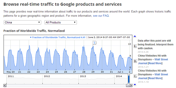 The website claims that the block has been going on for around a week and a half now, and that report is backed up by Google’s own transparency report. The data shows that real-time traffic activity in China has been slowing since around Friday of last week. That would be an indicate that there is some amount of disruption taking place.