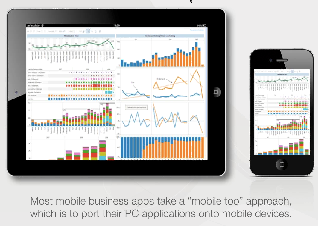 Backing up a bit, Roambi appears to be one of the few succesful players whose goal is to make sure data is visualized in today’s mobile world and not just shrunk for the smaller screens, much like this shot below, provided by Roambi. Roambi’s argument: This is not a mobile solution.