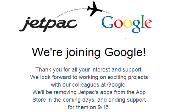 While no financial terms of the deal were disclosed, Jetpac will be shutting down, and I think we can all make the assumption that this is yet another acqui-hire for Google.