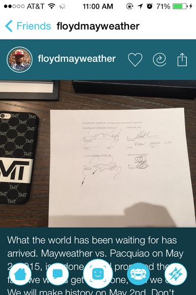 So what was all of this hype for? Mayweather finally revealed it on Shots later in the day: he sent a picture of his contract to fight Manny Pacquiao, a.k.a. the only other current boxer I can name.