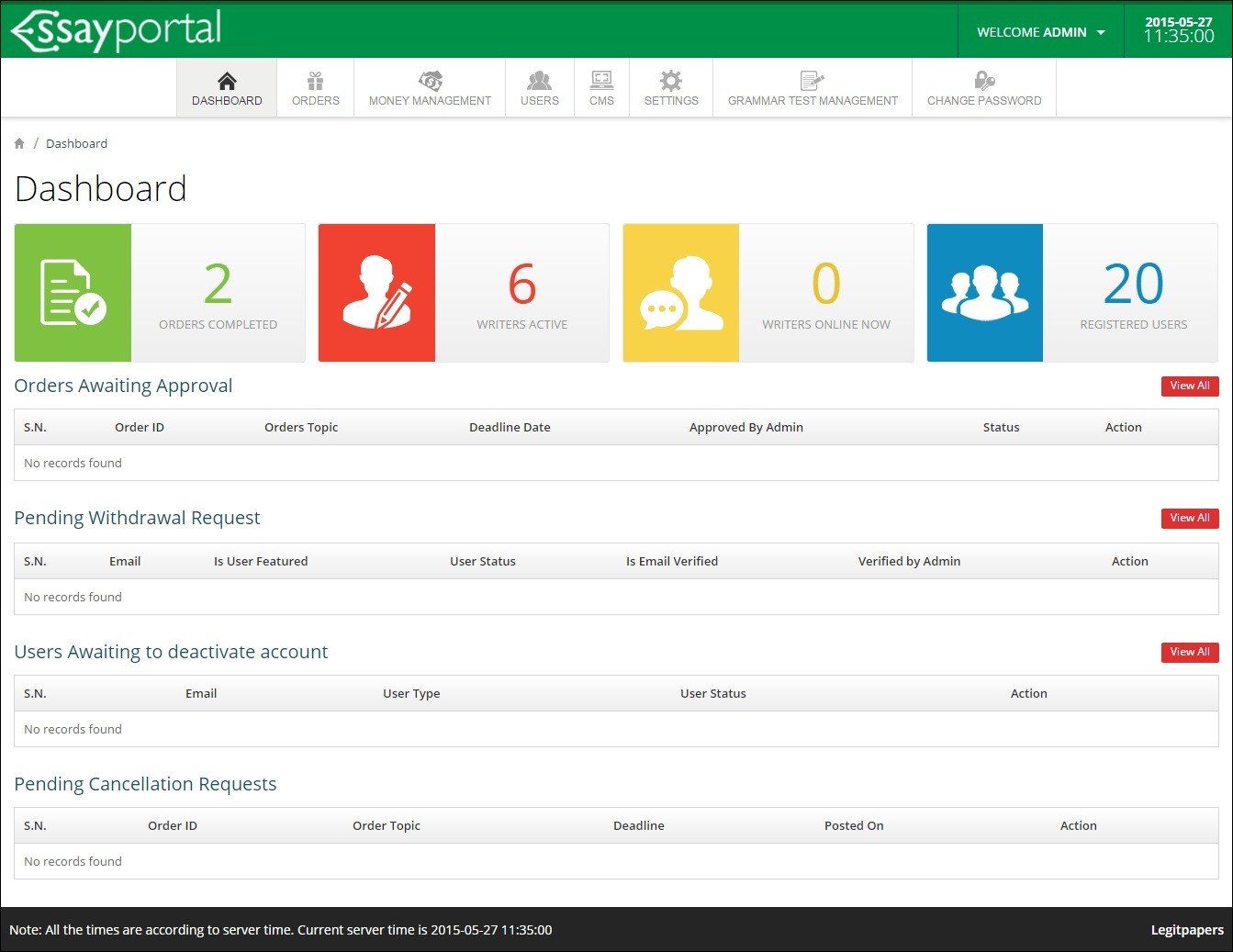 • Manage all orders, clients details, writers details, and content on the website