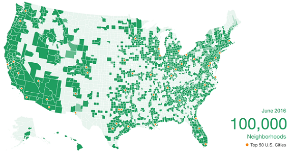 While it may not have hit the ground running, the company has been ramping up quickly in the last few years, and now it has hit a significant milestone. The company announced that it now has more than 100,000 neighborhoods, meaning it now represents 60 percent of all neighborhoods in the United States.