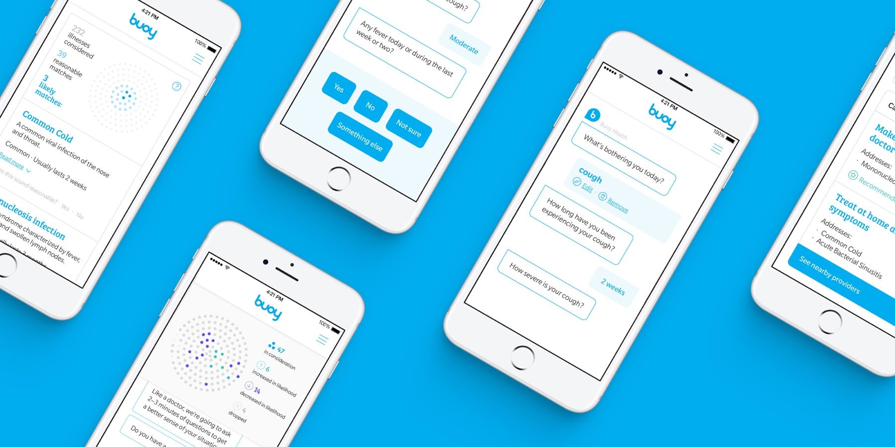 “When people hear about Buoy, the first thing everyone says is, ‘Why don’t you go see a dotor?’ Well, that’s a very pivledged thing for someone to say. In Boston, the average wait to see a phyisician is 49 days. We really believe that if you give people good, personalized information, it empowers them to make great healthcare decisions,” he said. “Right now, in healthcare, people are trying to do that by putting more humans in front of people, for example nurse triage lines, telemedicine is getting a lot of press, but the decision to call a doctor or call or a nurse or even go to your doctor, is a triage decision you’ve made, and you’ve probably turned to Google to make. We’re trying to solve that problem.”