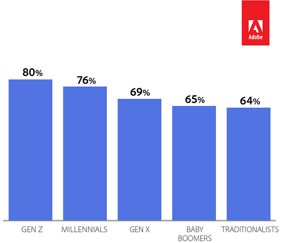 More than half of those surveyed said they are more likely to make a purchase if content is personalized, but, at the same time, 82 percent also said they would stop purchasing from a brand if it “crossed the line with a creepy, personalized experience.” In addition, the overwhelming majority of every generation are also already adjusting their setting to protect their information, including 80 percent of Gen Z and 76 percent of Millennials.