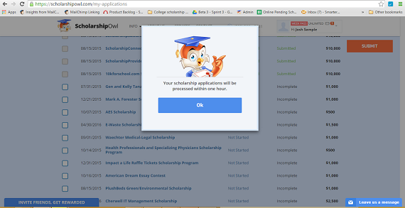 Even after the first applications go out, ScholarshipOwl continues to monitor its database for more matches, notifying members of approaching deadlines, new opportunities and more, throughout their college experience, as long as they remain members.